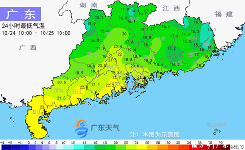 28日,全省大部晴到多云。最低气温:珠江三角洲大部和粤西市县22~25℃,粤北偏北市县17~19℃,其余市县19~22℃。