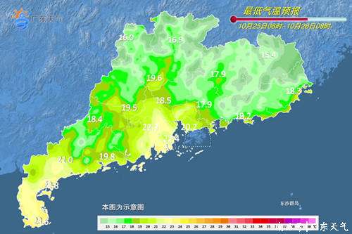 26-27日,粤西市县晴到多云,其余市县晴间多云。最低气温:珠江口附近和粤西市县20~24℃,粤北偏北市县15~17℃,其余市县17~20℃。