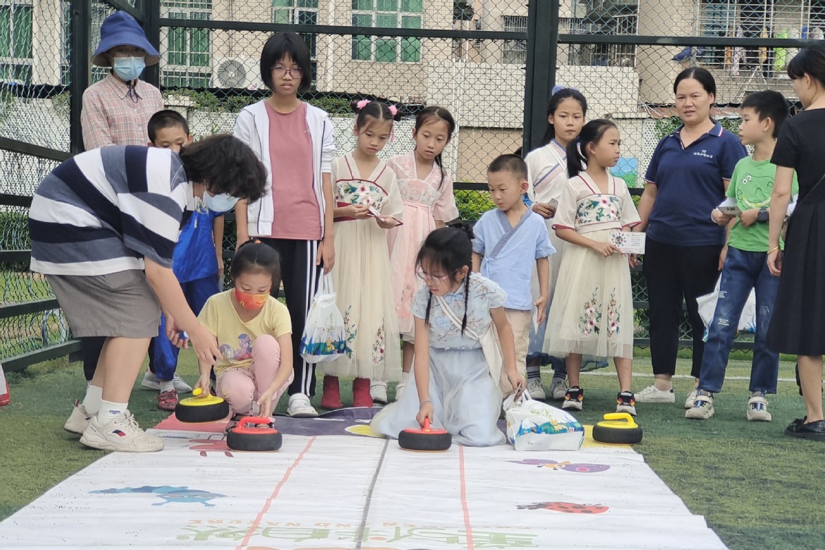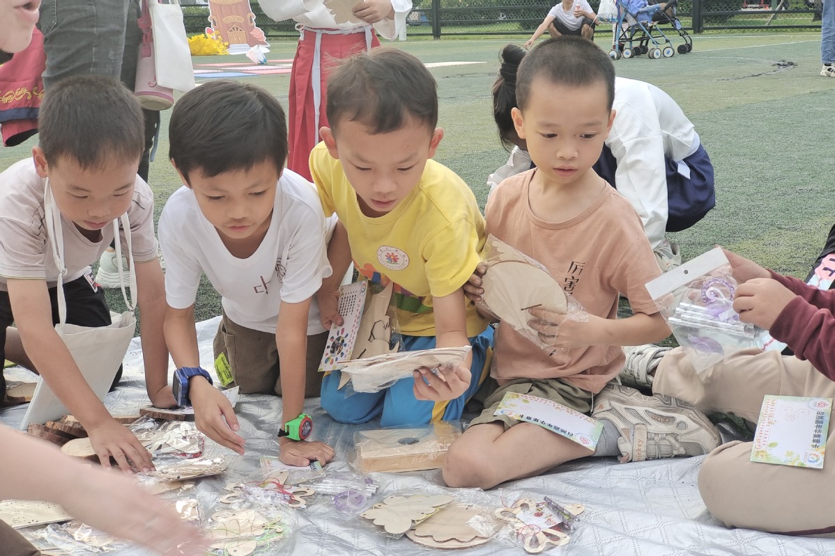 第一部分结束后,孩子们便开始进行第二部分,大家各自挑选游戏闯关,有昆虫冰壶、寻找昆虫身体、拍蚊子等,还有自然艺术创作等着大家进行创作。孩子们在绿色的草地上来回穿梭,享受着自然游戏带来的快乐。
