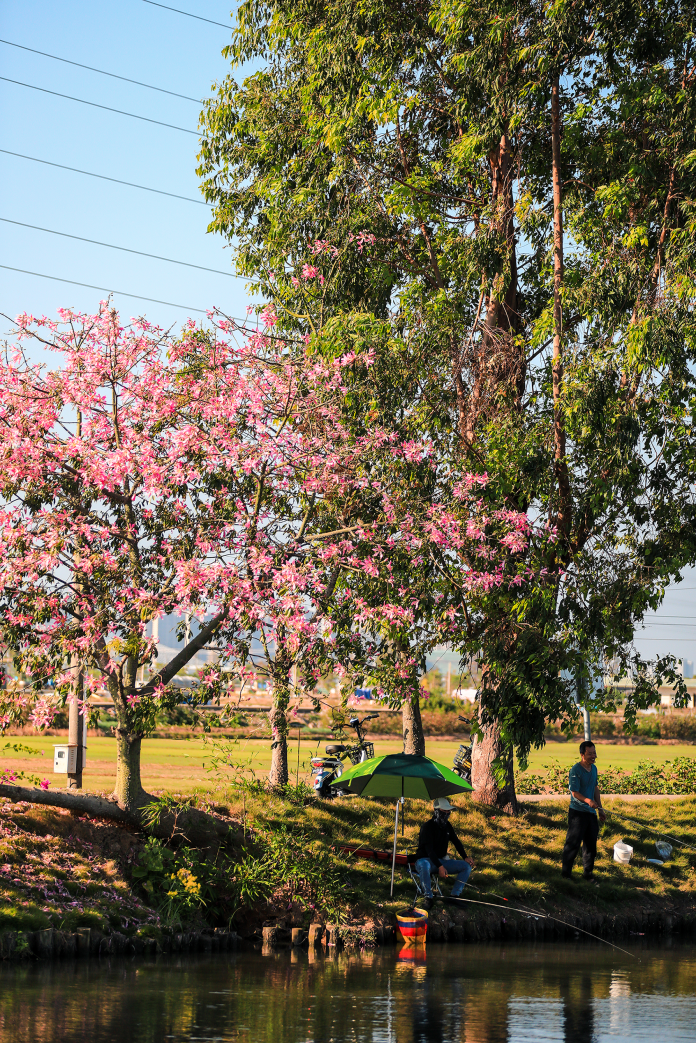 异木棉树下,前来垂钓的人们享受着闲适的秋日时光。