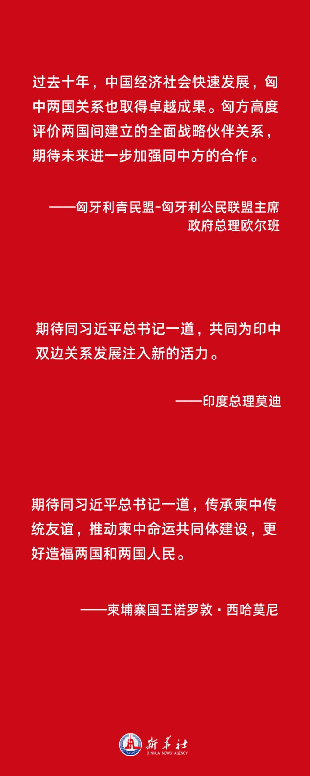 匈牙利青民盟-匈牙利公民联盟主席、政府总理欧尔班表示,过去十年,中国经济社会快速发展,匈中两国关系也取得卓越成果。匈方高度评价两国间建立的全面战略伙伴关系,期待未来进一步加强同中方的合作。