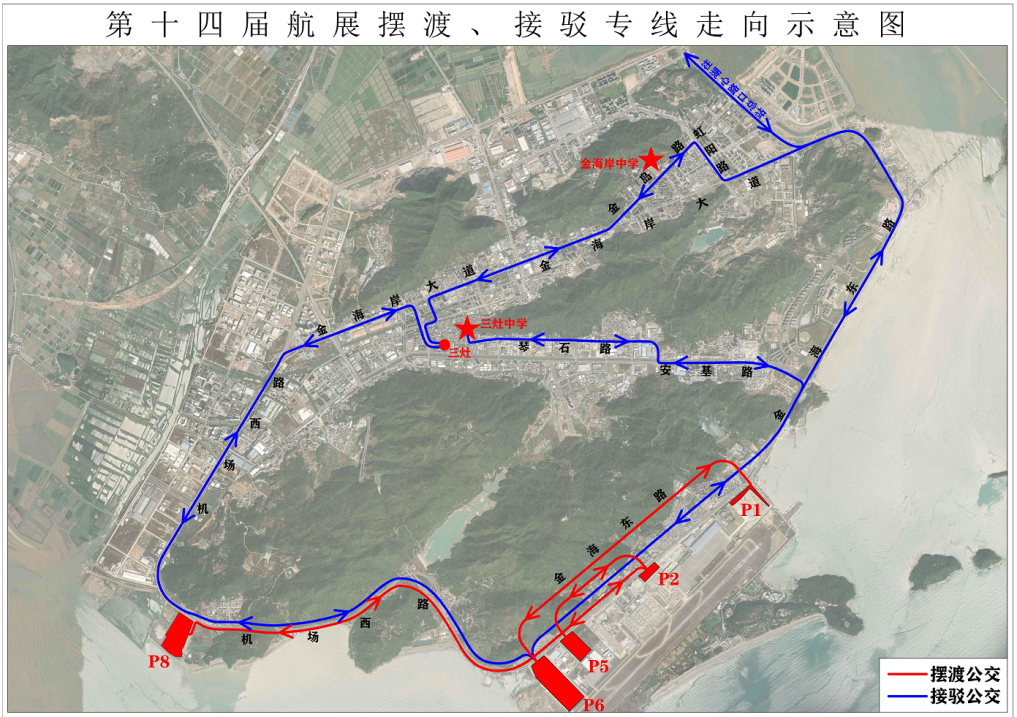 根据航展交通要求,接驳专线在核心区(“海澄工业区—英表”段)站点仅允许在北侧站(靠居民区一侧)停靠, 南侧(靠机场、航展馆一侧)禁止停靠站,请航展核心区社区居民、企业员工及学生凭证在北侧站点上下车往返出行。