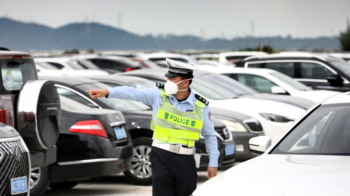 11月8日17时55分,展区人流逐渐散去,拱北交警大队宋警官在展馆门口指挥交通,疏导车辆,指导人们走特设人行道。突然,一位老人焦急地朝他走来,称自己找不到家人,请求交警帮忙。宋警官一边安抚老人,一边仔细询问情况。