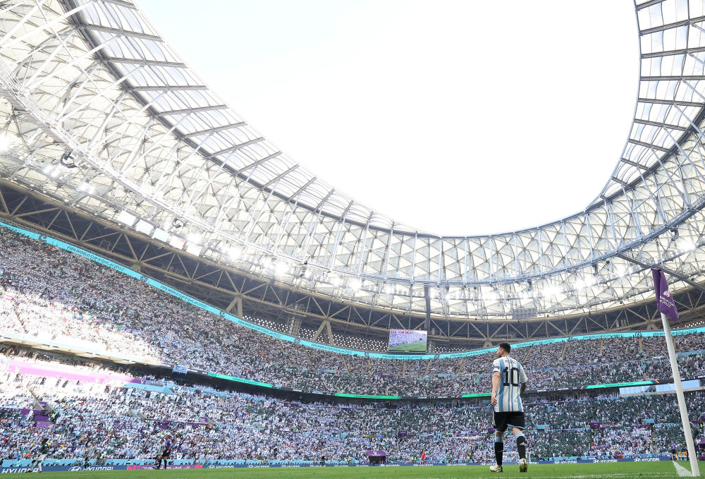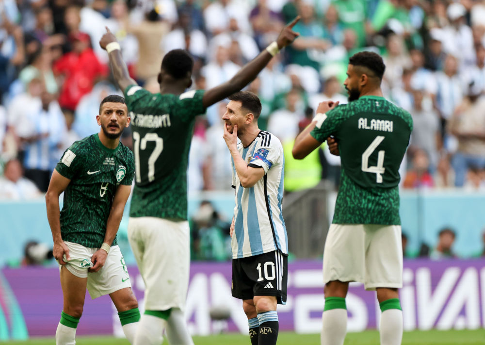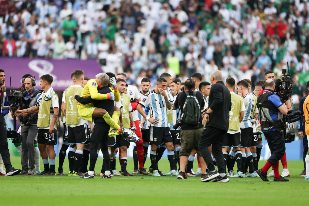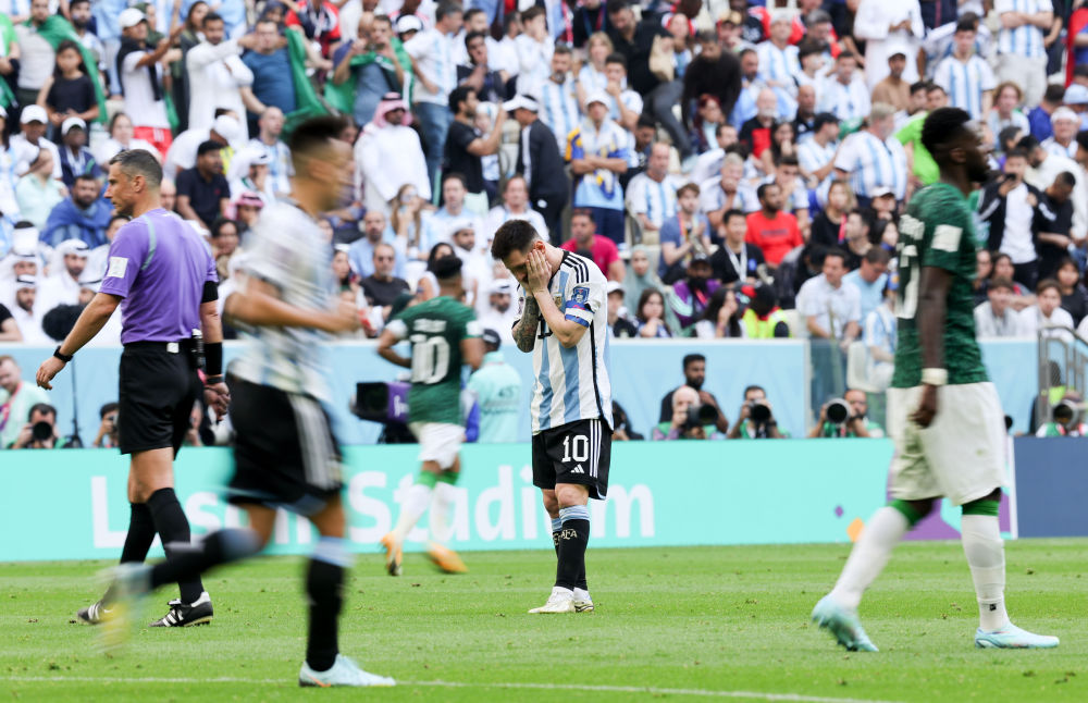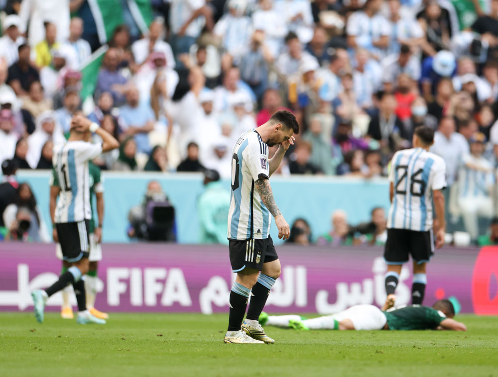11月22日,在卡塔尔卢赛尔球场进行的2022卡塔尔世界杯足球赛C组比赛中,阿根廷队以1比2不敌沙特阿拉伯队。