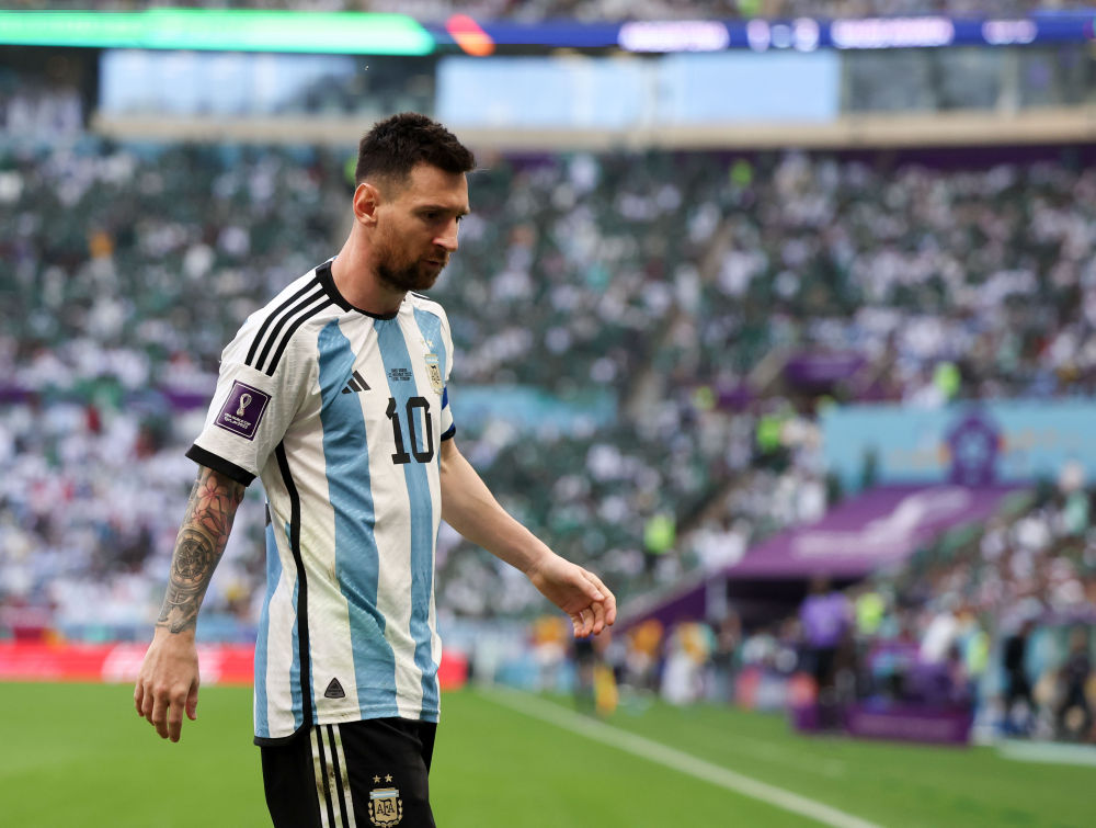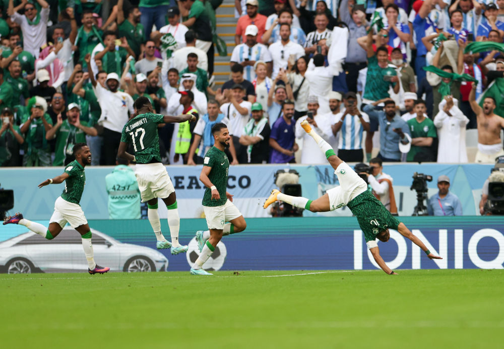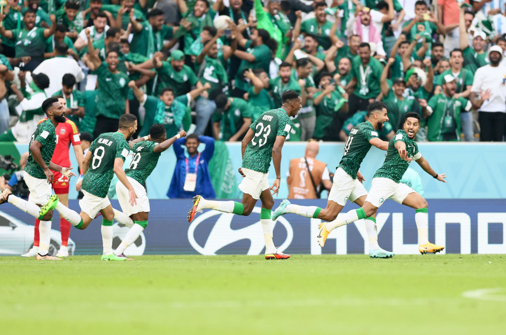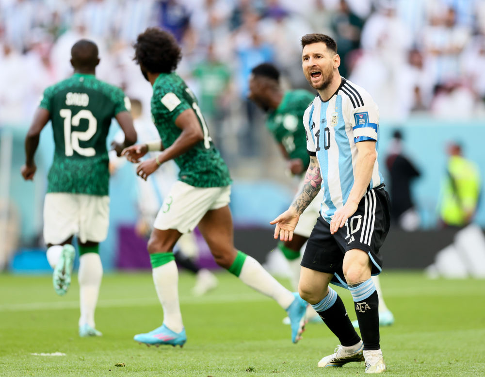 11月22日,在卡塔尔卢赛尔球场进行的2022卡塔尔世界杯足球赛C组比赛中,阿根廷队以1比2不敌沙特阿拉伯队。