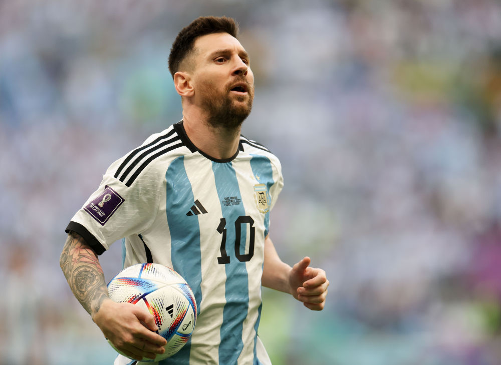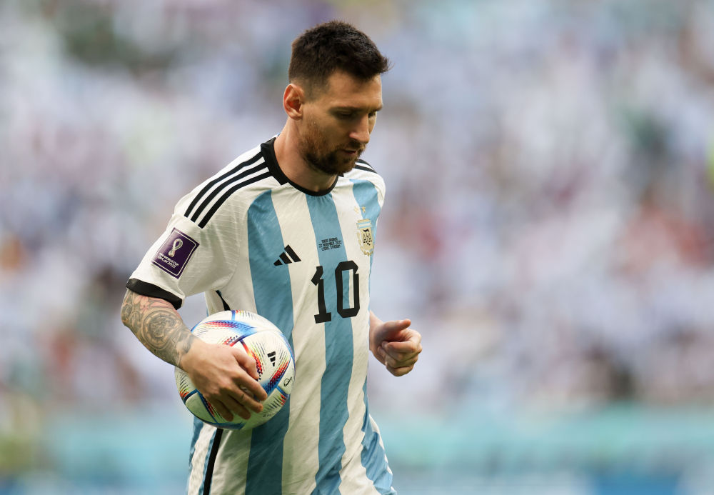 ↑11月22日,阿根廷队球员梅西(右二)在比赛中。新华社记者 曹灿 摄