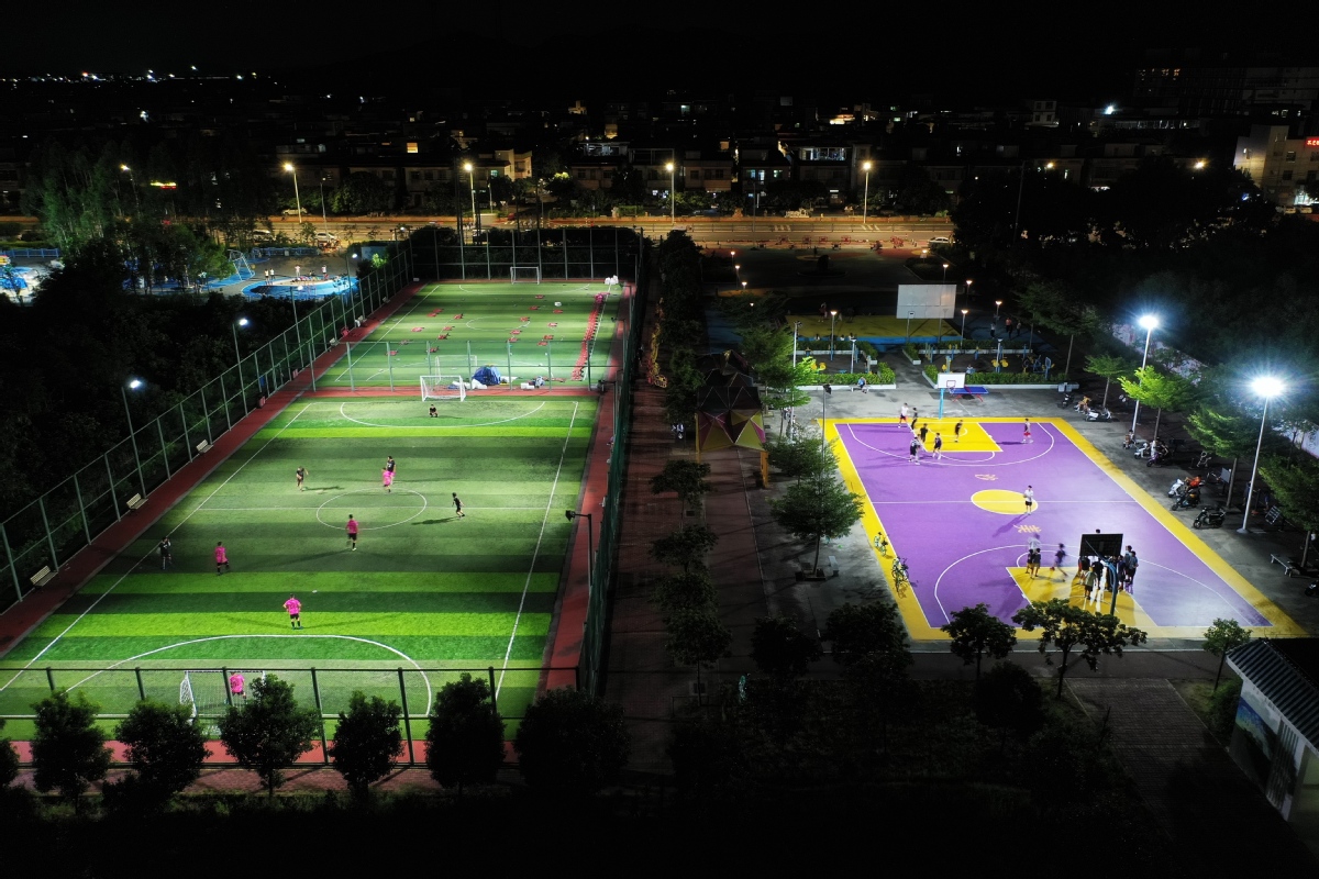 夜晚的沙美文体公园灯火通明、运动气氛浓厚,一个个跃动的身影在这里张扬着生命的活力。