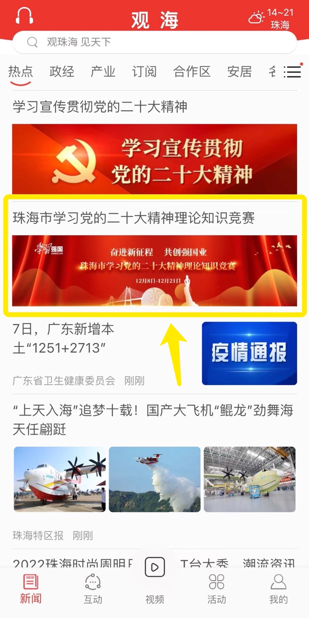 线上竞赛阶段为12月8日至12月21日,线上竞赛在观海APP设置知识竞赛活动专题页面,同时在“珠海特区报”微信公众号菜单栏设置活动入口,并在活动页面同时开放“模拟练习”及“周赛”入口。活动过程中,“个人挑战赛”的前300名可进入“学习达人榜”;“团队挑战赛”按各区(功能区)、各党(工)委为单位,结合正确率和参与度分别进行排名。线下决赛将在12月下旬举行。