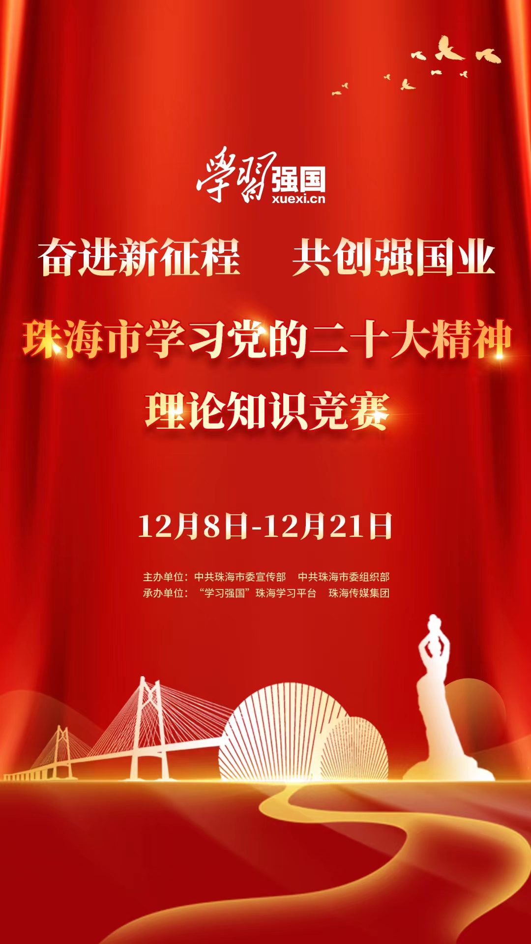 旗帜引领方向,知识照亮征程。12月8日,“奋进新征程 共创强国业”珠海市学习党的二十大精神理论知识竞赛正式启动。