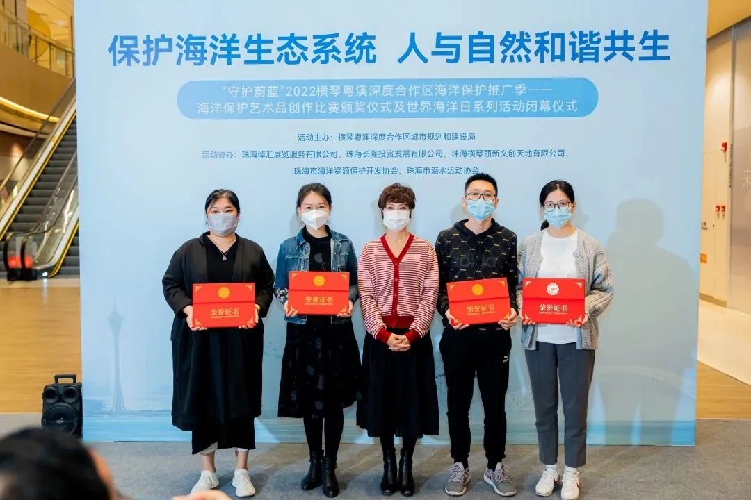 近日,横琴粤澳深度合作区开展为期6个月的“守护蔚蓝”2022合作区海洋环保推广活动暨世界海洋日系列活动。海洋保护艺术创作大赛颁奖仪式以及海洋日系列活动闭幕仪式日前在横琴创新方西区一楼举办。