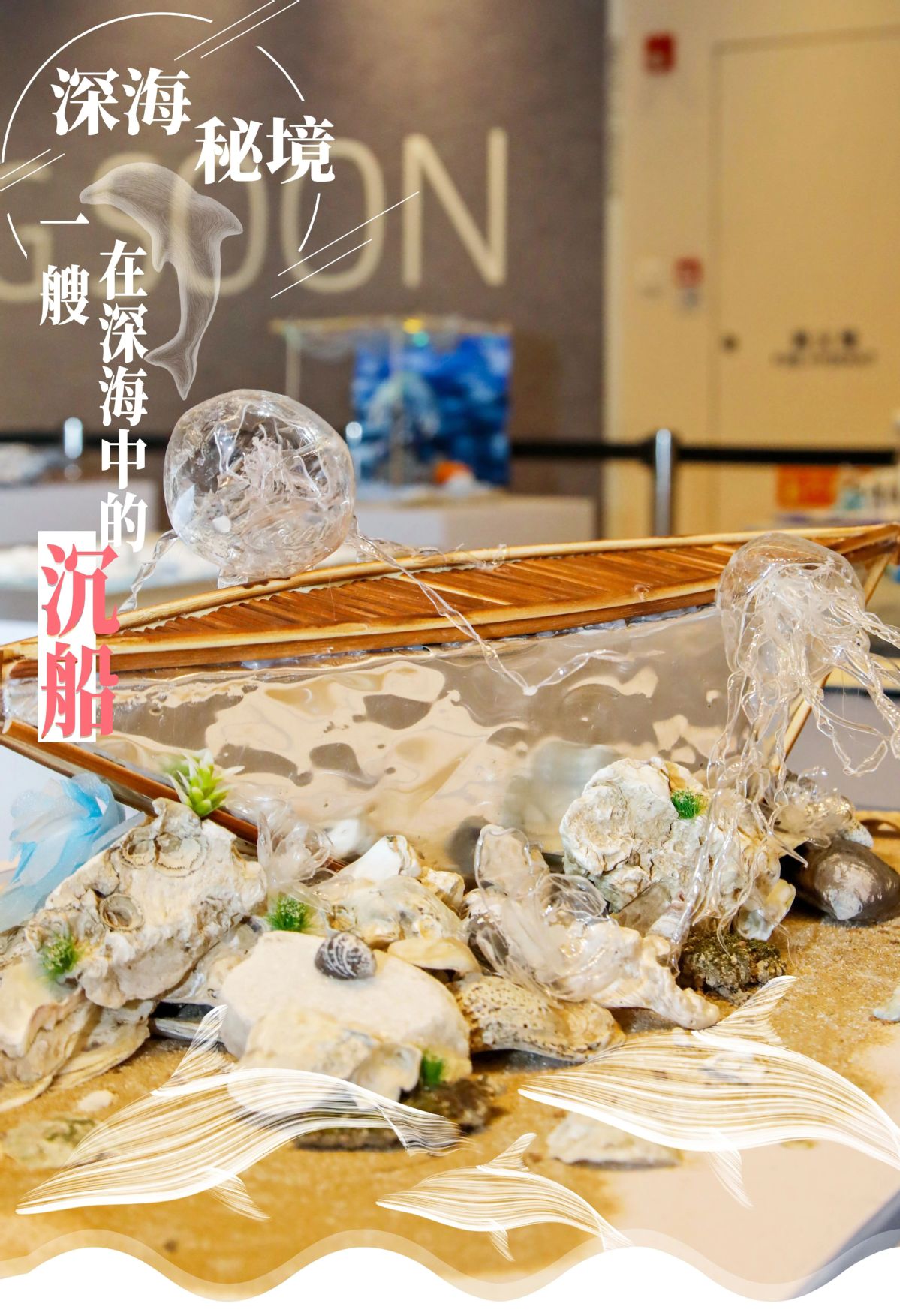 作品《深海秘境》呈现的是一艘在深海中的沉船,经过时间的沉淀,逐渐形成一个完整的生态系统。船上遍布海洋生物和植物,仿佛落在深海的“森林”,充满生机。