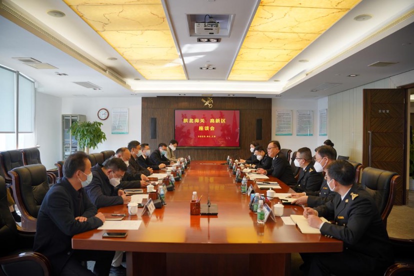 1月18日下午,珠海高新区党工委书记赵适剑,区党工委副书记、管委会主任王小彬率队走访拱北海关、珠海出入境边防检查总站,开展节前慰问并就外贸进出口等工作进行座谈交流。拱北海关关长、党委书记詹少彤,珠海出入境边防检查总站党委书记、政委袁斌,珠海出入境边防检查总站党委副书记、总站长陈宏军参加活动。