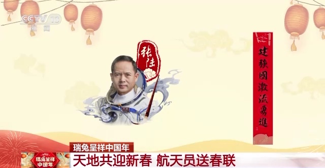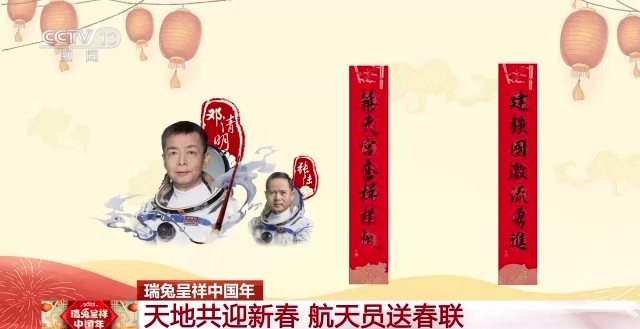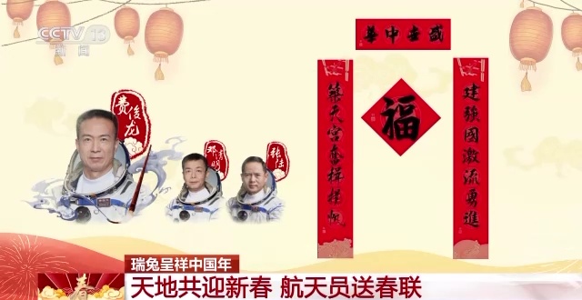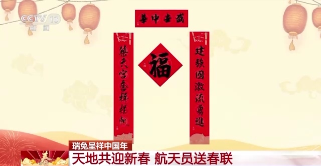 万家团圆之时,神舟十五号乘组航天员费俊龙、邓清明、张陆还送来了太空春联。