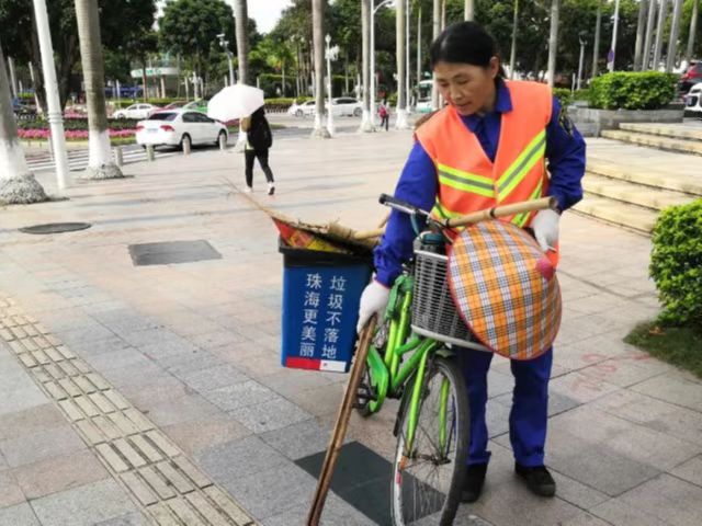 春节期间,香洲区市容环境管理中心拱北街道清扫队环卫工人张美连和往年一样,在工作岗位上度过。这是她在工作岗位上度过的第20个春节。