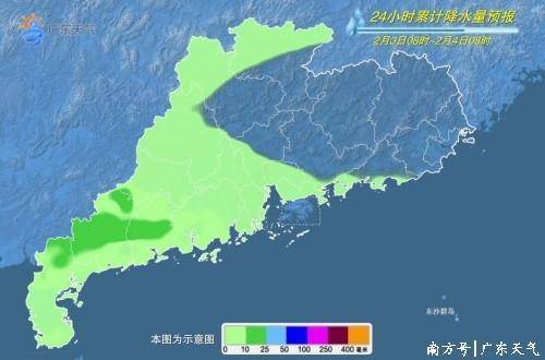 具体预报:2月3日,粤西市县有小雨局部中雨和雾,韶关、清远阴天间多云转小雨,其余市县多云到阴天,局部有小雨。