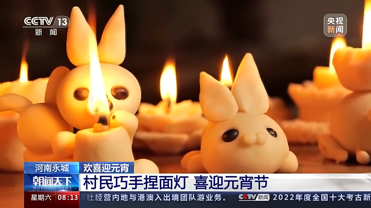 面灯也叫面盏、棉花灯。在河南永城,人们在元宵节除制作彩灯外,还会蒸面灯,祈祷新的一年风调雨顺、五谷丰登。元宵节前夕,永城市演集镇时庄村村民们忙活着制作面灯。从揉面到成型、点睛,一块块面团经过巧手揉捏,转眼间就变成兔、鼠、龙和牡丹花等各种惟妙惟肖、栩栩如生的面灯,极具民间特色。 做面灯寓意着家人对人寿年丰的祈盼和对美好生活的向往。