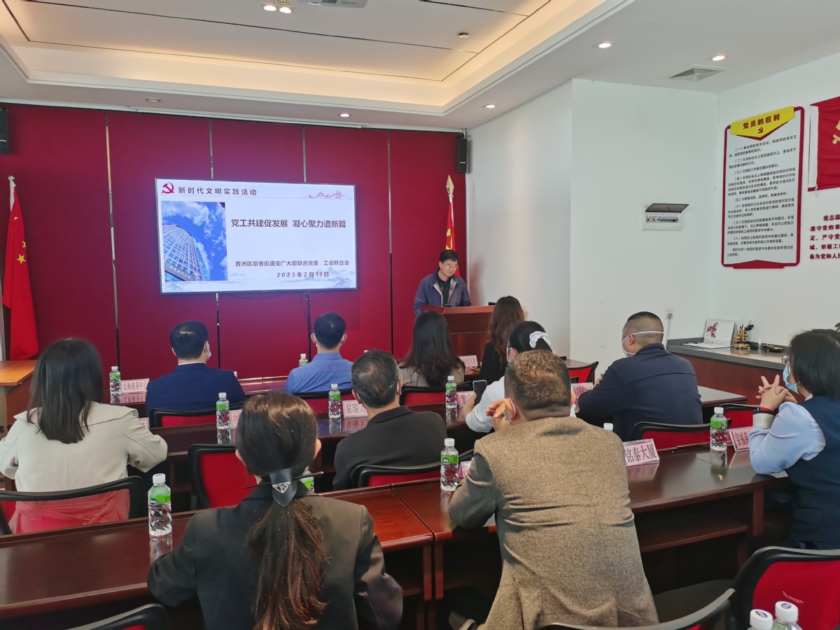 活动中,安广大厦联合党委书记林俊雄引导参会人员参观了安广大厦党群服务中心、党员活动室、党建展览长廊、工友驿站等党群服务阵地。随后,大家来到会议室展开宣讲,围绕“党工共建促进高质量发展”主题,分享安广大厦楼宇党建示范点的优秀工作经验。通过党建引领集聚各方资源,安广大厦联合党委在楼宇搭建高质量党建阵地、广泛开展党建工建活动,给予职工“家”一般的温暖,极大地提升了安广大厦的营商环境,赋能安广大厦楼宇经济高质量发展,最终形成党建引领工建,工建服务党建的良性循环。近3年,安广大厦的纳税额达到2.3亿元,走出了一条党建与经济、服务与发展相互融合促进的“楼宇党建”新路径。