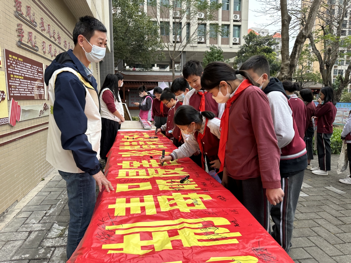 讲座结束后,凤山街道禁毒专干通过组织师生参观禁毒画作、仿真模型及禁毒宣言横幅签名等进一步加深和巩固同学们对禁毒的认识和使命感。