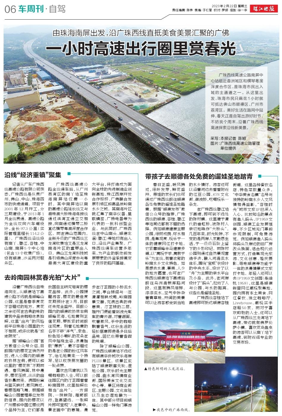 广珠西线高速公路南屏中心站临近香洲城区和横琴粤澳深度合作区,是珠海市民出入城的主通道之一。从这里出发,珠海市民只需花1小时就可抵达佛山市顺德区、广州市荔湾区。美好生活在路网中延伸,春天正是自驾出游好时节,不妨找个周末,沿着广珠西线高速探索沿线新美景。>>详细内容戳这里