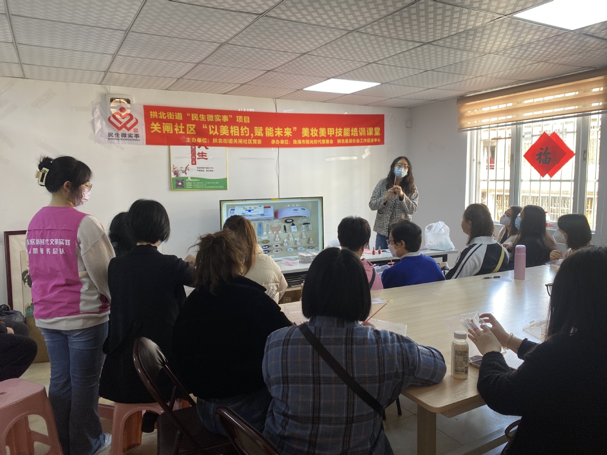 据了解,本次活动是关闸社区民生微实事项目“左邻右里”社区赋能融合治理项目技能培训系列课程之一,本课程共设有七期,该课程以美妆美甲知识为教学主题,满足辖区居民及辖区就业困难群体提升技能的多样化学习需求,拓宽他们的就业渠道和提升就业技能,增加经济收入。