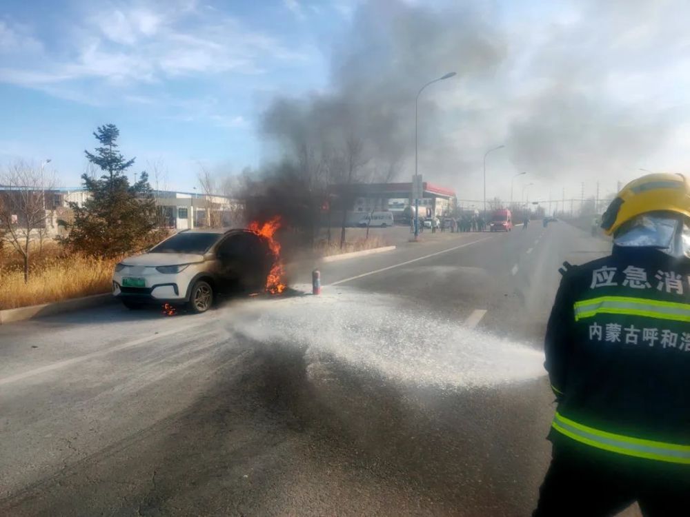 2023年2月8日11时22分,呼和浩特市金桥开发区燃气热力公司门口的一辆电动汽车起火,消防救援人员接到报警后立即前往现场将火扑灭,所幸未造成人员伤亡。