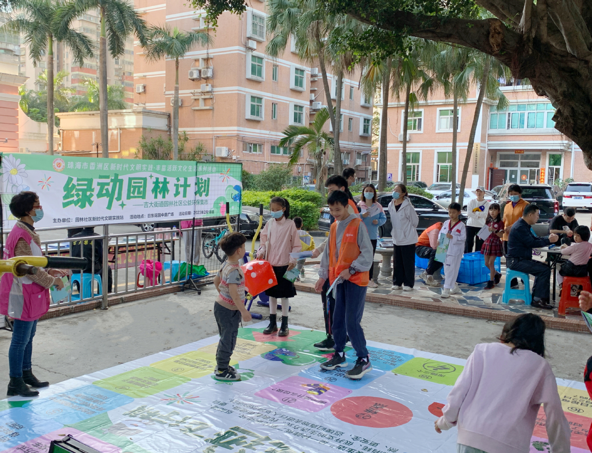 近日,由吉大街道园林社区新时代文明实践站主办的“潮玩喜乐,妙趣横生——绿动园林公益环保集市”在日东花园中庭广场开市,社区居民齐聚一堂潮玩环保,近50名社区居民和亲子家庭参加了此次活动。