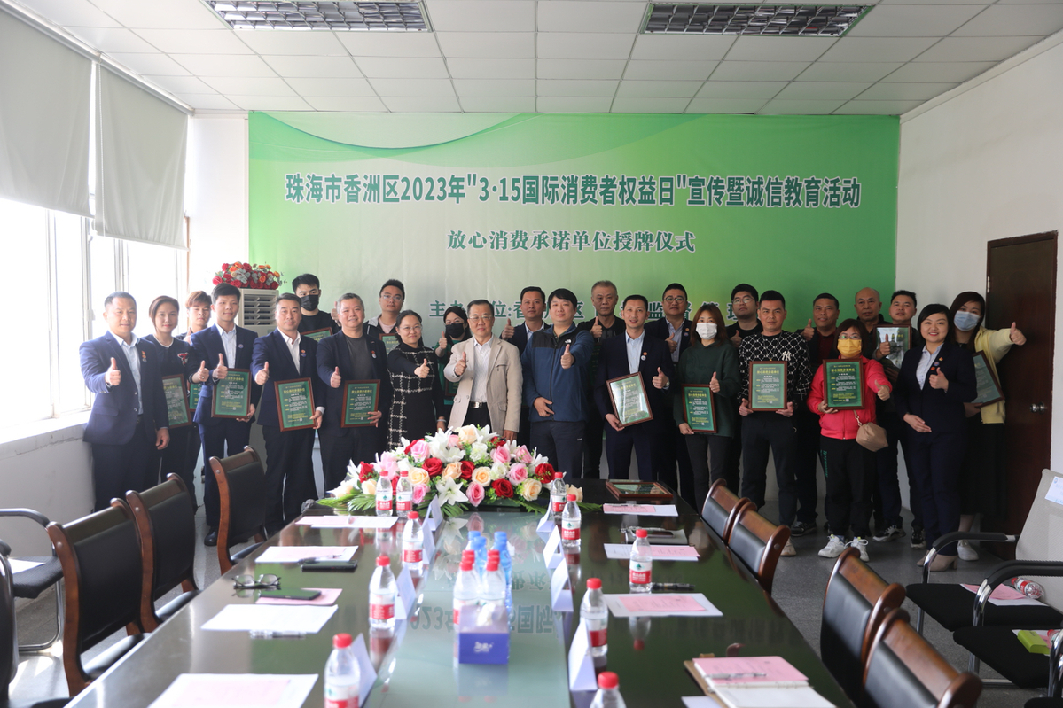 当日,珠海市消费者权益保护委员会、香洲区市场监督管理局、香洲区消费者权益保护委员会等单位相关领导为这21家二手车商授予“放心消费承诺单位”牌匾。