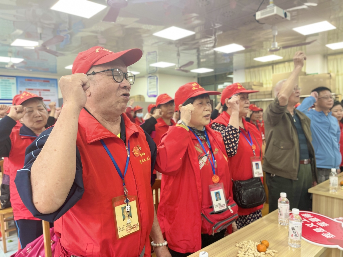 参与疫情值守、协助核酸采样、整治社区环境、帮助弱势群体……在庆祝大会上,队员们共同回顾义工队20年的发展历程,展望未来发展愿景。81岁的邝志浓是队伍当中年纪最大的队员,他1998年退休后发挥余热再“上岗”,与义工队队员自编自导一批节目,并组织到各地义演,丰富群众的文化生活。“我会继续投身到志愿服务中去,帮助有需要帮助的人。”邝志浓说。