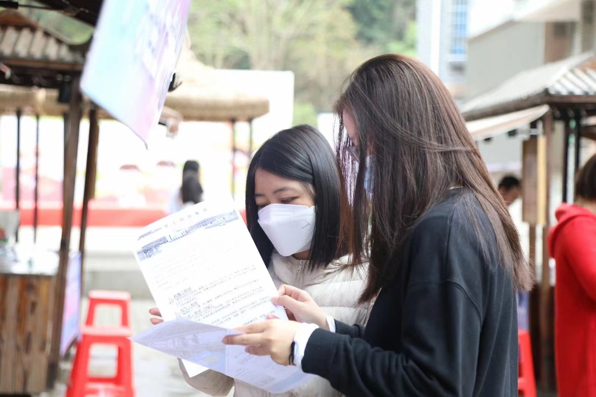 上午9时,莲江村广场人声鼎沸,各招聘摊位的工作人员忙着向村民们介绍岗位情况及薪资待遇。大学生小吴一大早就来到招聘会现场,想找一份行政方面的工作。小吴即将大学毕业,在得知村里举办招聘会,便第一时间过来应聘。“在家门口找工作,实在太方便了,让我们这些返乡大学生有更多的选择。”