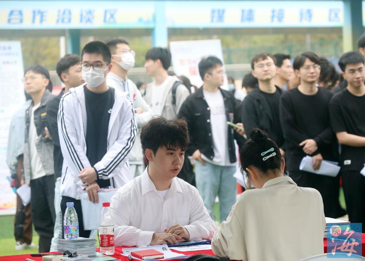 在活动现场,金湾区企业招聘专区位居“C位”,吸引了众多应届毕业生前来问询。记者在专区内看到,其中不乏联邦制药、珠江钢管等金湾知名企业,展位前也是大排长龙。期间,不少求职学生向记者表达了留在金湾的强烈意愿。