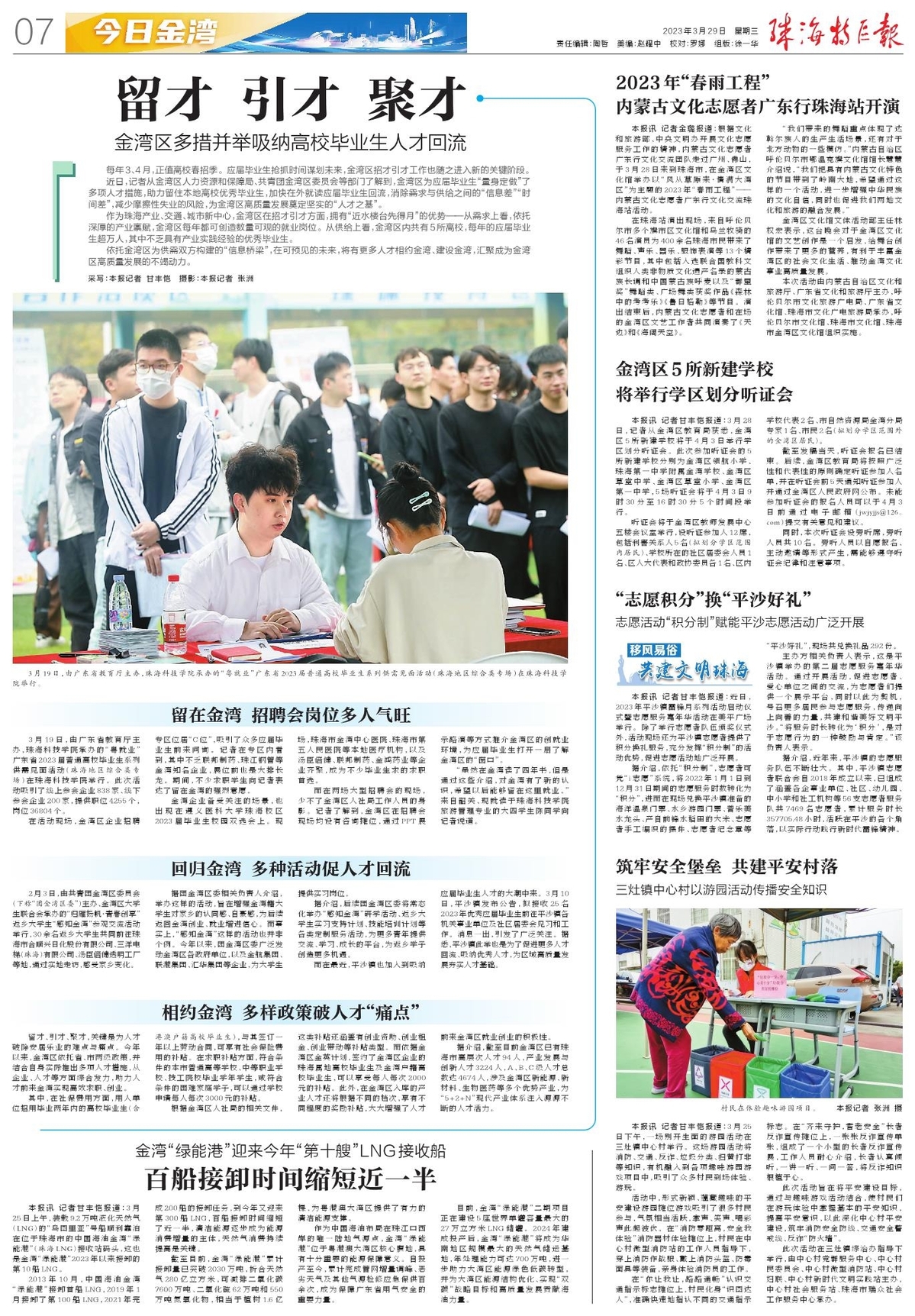 每年3、4月,正值高校春招季。应届毕业生抢抓时间谋划未来,金湾区招才引才工作也随之进入新的关键阶段。
