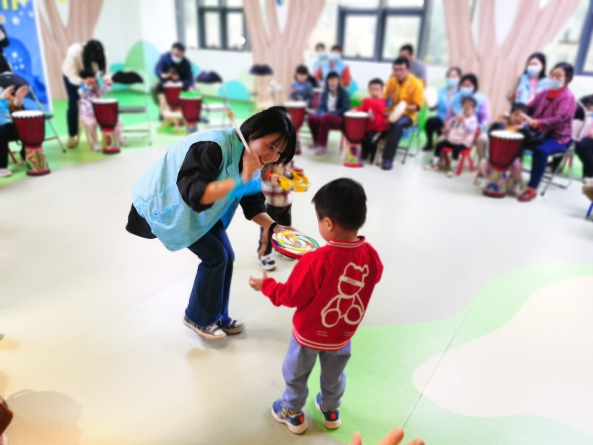 一位孤独症儿童家长表示,平时生活、工作非常紧张,今天在活动中敲击鼓面的时候,专注于音乐的节奏变化,缓解了身心压力,释放了一些内心的不安与焦虑情绪。