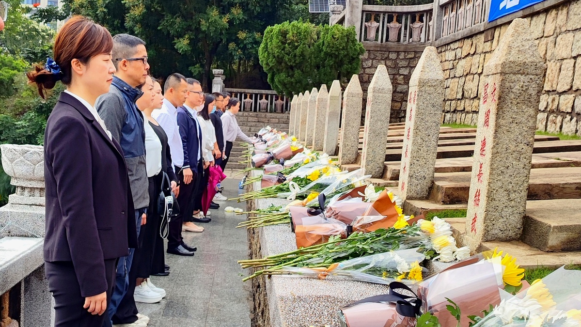 陵园内,松柏苍劲,丰碑岿然。在庄严肃穆的烈士墓碑前,大家全体肃立,鞠躬默哀,并敬献鲜花,以此告慰烈士忠魂,深切表达对革命先烈的追思与敬仰之情。