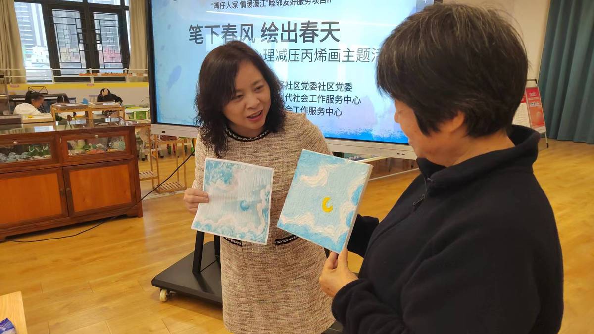 为进一步提升辖区内珠澳女性心理健康素养,帮助辖区女性科学调适心理,缓解身心压力。2023年4月1日,由湾仔社区党委主办,珠海市乐益社会工作服务中心承办的民生微实事项目“湾仔人家•情暖濠江”睦邻友好服务项目Ⅱ开展了“笔下春风绘出春天”心理减压丙烯画活动,20余名珠澳妇女运用绘画的力量探索自己的内心,更加悦纳自己。