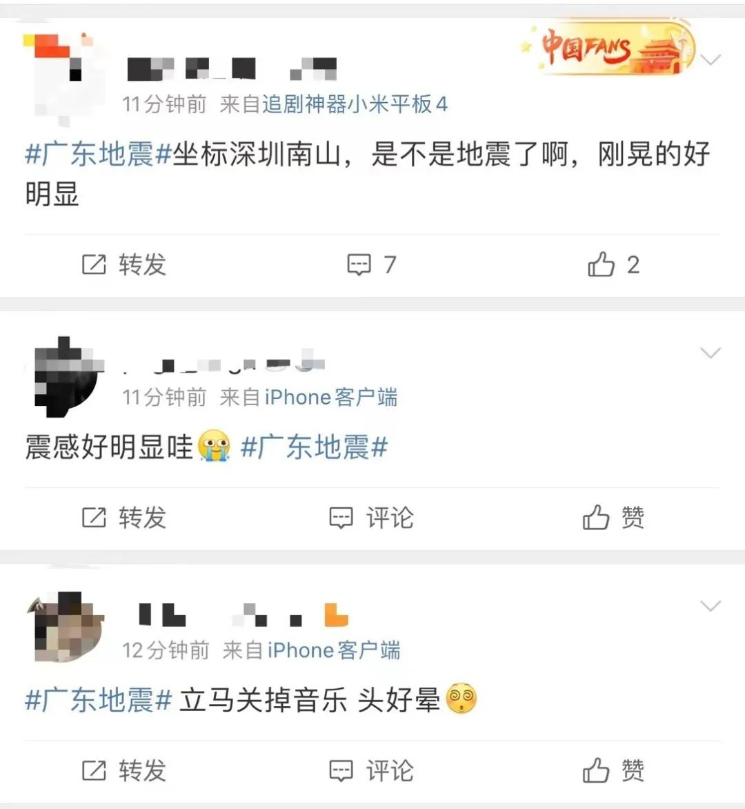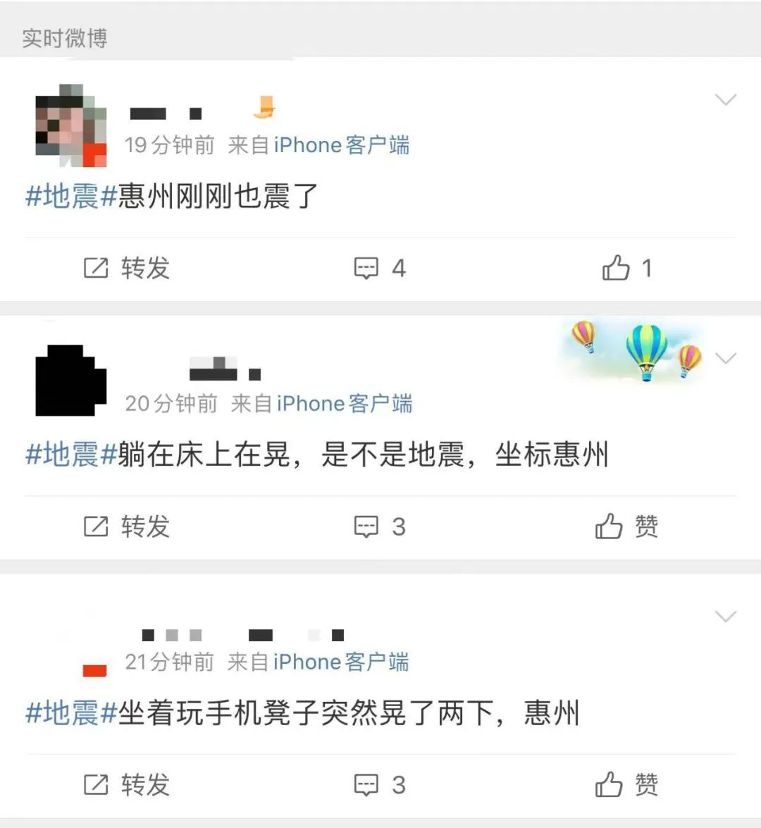 另外据网友反映,广东深圳、惠州等地也有震感。