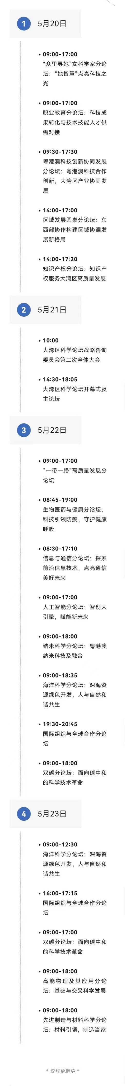4月26日,南方+记者从大湾区科学论坛秘书处获悉,由“一带一路”国际科学组织联盟发起、广东省人民政府主办的2023大湾区科学论坛将于5月20日-23日在广州南沙召开。