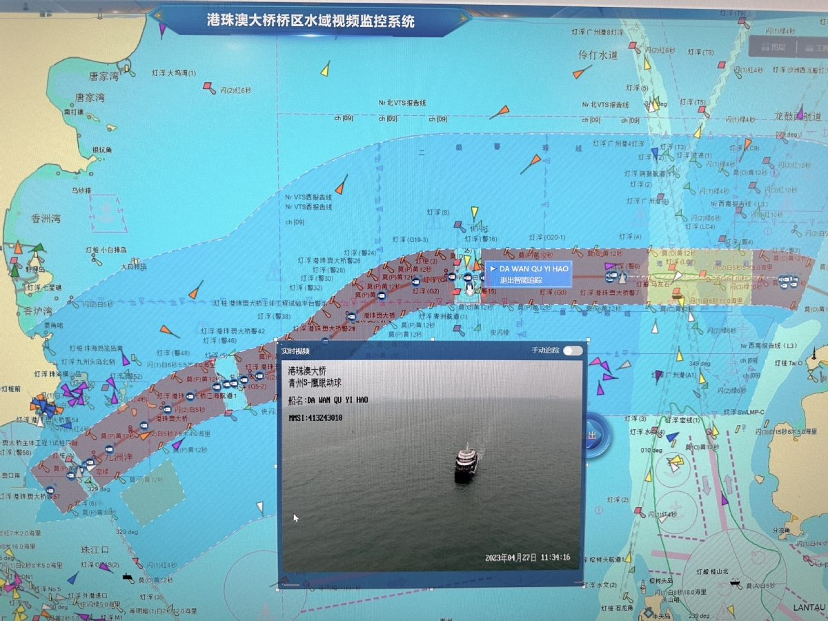 27日,记者从港珠澳大桥海事局了解到,桥区水域视频智能监控系统主要有:水域监管、视频巡航、视频联动、AR实景等四大功能模块。智管中心值班人员可充分利用该系统的功能,对辖区水域进行24小时360度全方位无死角监管。水域监管功能,可以让值班员一目了然熟悉当前辖区船舶实时动态(对涉嫌违规的船舶可以进行实时智能追踪和轨迹回放)及水域通航情况:哪里船舶密度大,哪里商客船频繁会让,哪里交通需要进行组织疏导;视频巡航功能,可以对预设置的辖区重点水域逐一巡航,值班人员只需要查看屏幕便可以轻松发现当前水面有无异常漂浮物、碍航物、污染物等情况;过往船舶是否存在故意遮挡号牌、超载、违规排污、船上人员是否遵守操作(乘船)规范等情况;视频联动功能,在发现异常情况时,值班员通过视频联动功能与现场海巡船联动出击,使现场执法人员更快速、更精准地对异常现场进行第一时间的处置;AR实景指挥作战平台利用AR、人工智能等技术手段、AR鹰眼和AR高空球机,将各监控前端采集的信息汇聚,通过视频与业务、视频与数据结合,在视频中将通航船舶、静态设施、视频、图片等关键目标要素有机结合,通过可视化手段展示关键信息,形成一体化的综合信息应用体系,构建覆盖全域的综合立体监控体系,实现监测可视化、业务应用可视化、管理可视化,显示画中画,为支撑信息研判、强化水上交通监管提供高效便捷手段。