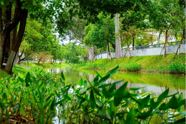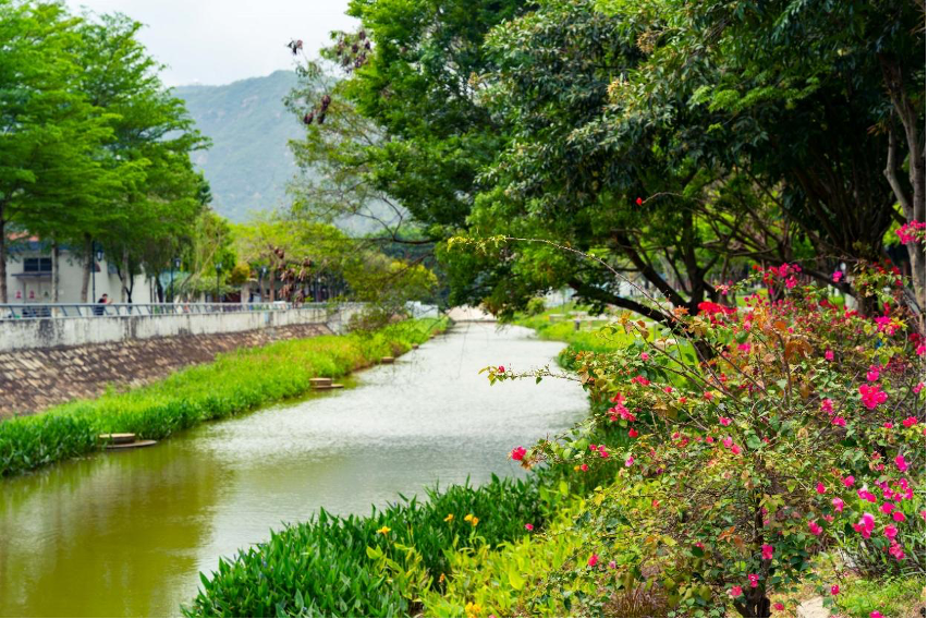 鸡山排洪渠碧道两岸郁郁葱葱,
