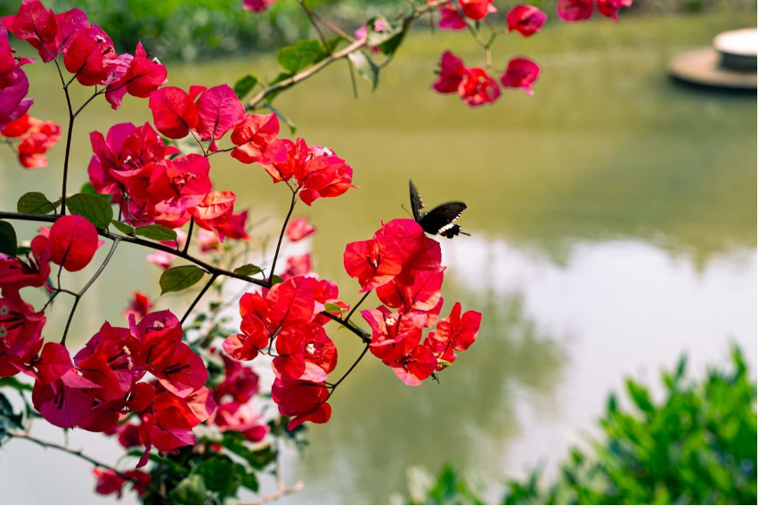 绿草如茵,鲜花盛开,蜂蝶蹁跹,