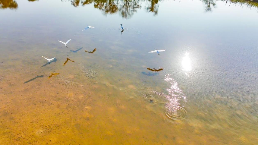 群鹭飞舞,鱼虾嬉戏,彩蝶蹁跹,虫鸣声声,