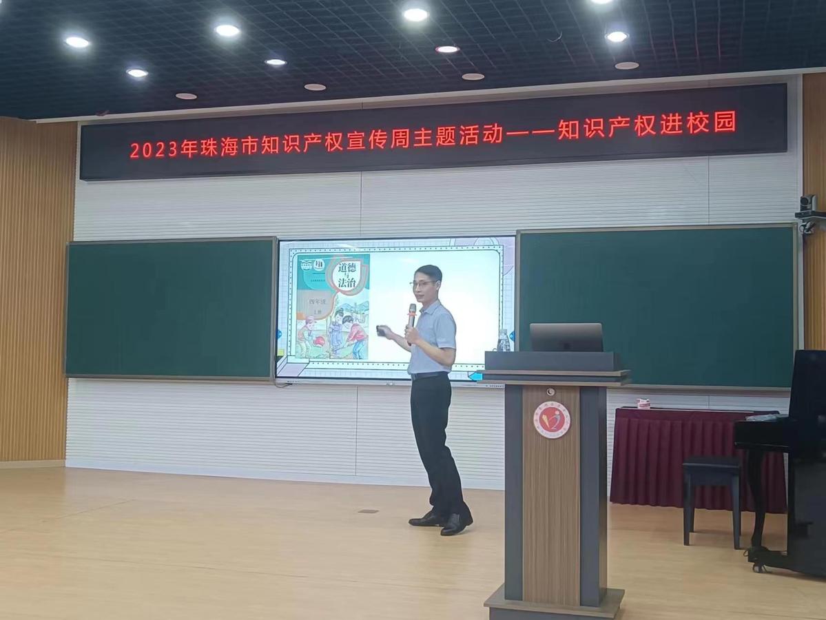 为提升香洲区青少年知识产权保护意识,提高社会创新能力和水平,2023年4月28日,围绕全国知识产权宣传周主题“加强知识产权法治保障 有力支持全面创新”,珠海市香洲区知识产权局联合珠海市知识产权保护协会,在珠海市香洲区第十二小学开展“知识产权进校园”活动,共200余名师生参加。