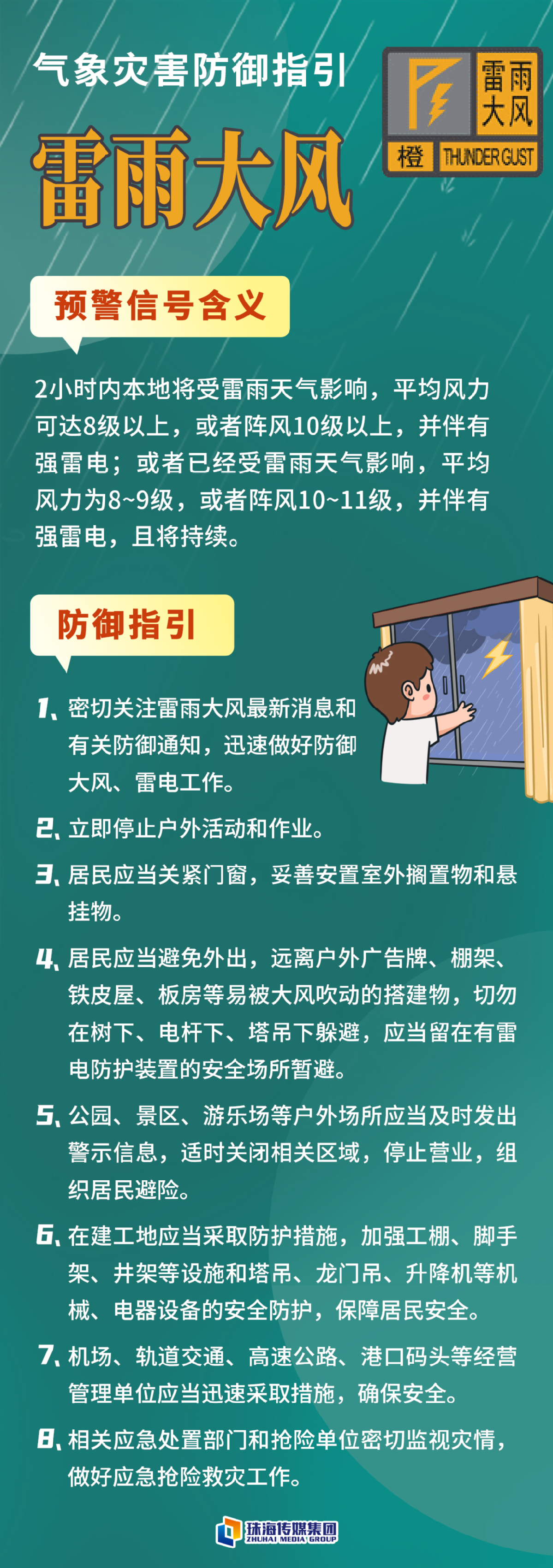 升级!珠海暴雨、雷雨大风橙色预警生效!