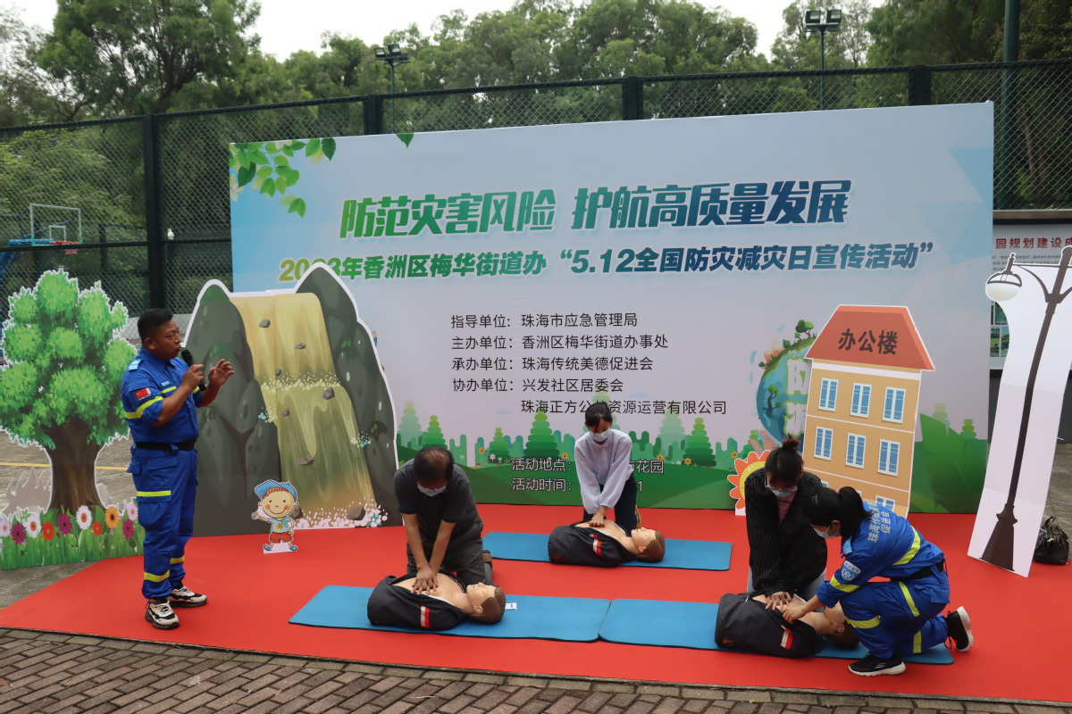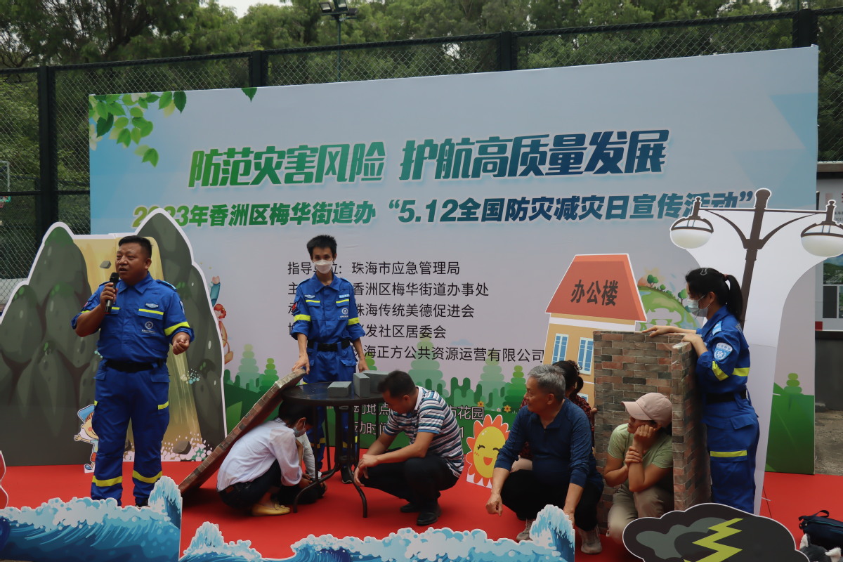 地震来了怎么办?台风来了怎么办?发生泥石流怎么办……5月12日是第15个全国防灾减灾日,为进一步提高抵御灾害和应对突发灾害的能力,增强街道辖区居民群众防灾减灾救灾意识,5月11日下午,一场主题为“防范灾害风险、护航高质量发展”的防灾减灾宣传教育活动在梅华城市花园里开展。此次活动由梅华街道主办,珠海市传统美德促进会承办,兴发社区、珠海正方公共资源运营有限公司协办。