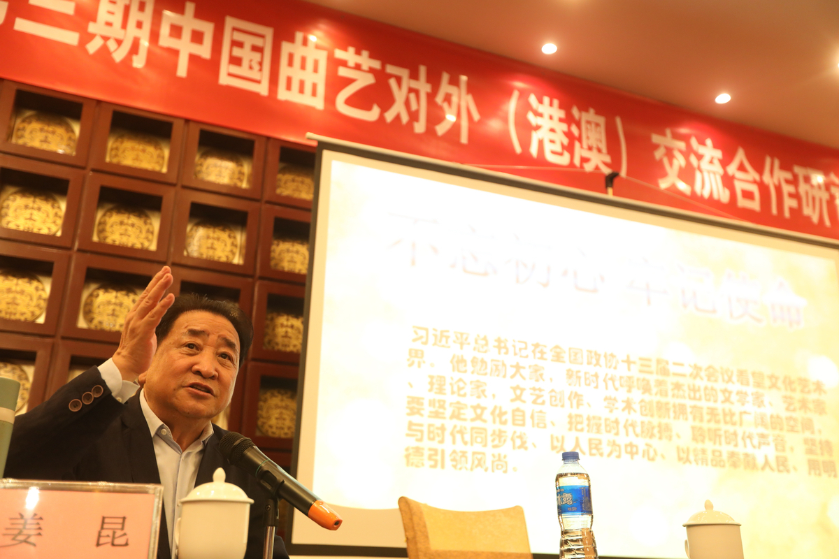 5月14日下午,由中国曲艺家协会主办、珠海市文联承办的第三期中国曲艺对外(港澳)交流合作研讨班在珠海开班。开班仪式后,中国曲协第八届主席、相声表演艺术家姜昆作了题为《你离人民有多近,人民跟你有多亲》的专题授课。
