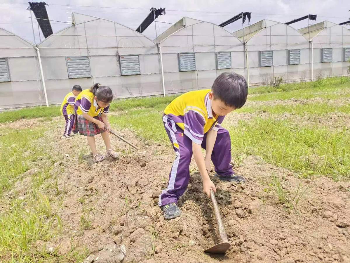 据了解,本次研学活动内容丰富,包括南药科普园参观、农用耕地体验、制作香包、“鱼跃龙门”户外拓展等,为孩子们呈现了一场文化与实践交融的沉浸式研学之旅。在农耕用地体验活动课程上,学生们手拿小锄头,兴致勃勃地松土挖坑、小心翼翼地安放豆苗、认真耐心地培土浇水,个个挥汗如雨、干劲十足。“一粥一饭,当思来之不易;半丝半缕,恒念物力维艰”这一古训在此刻体会尤其深刻。