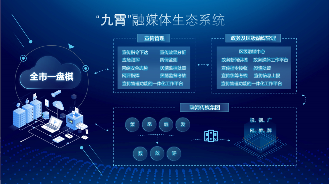 值得一提的是,这也是珠海传媒集团第二次斩获这一国家级奖项。在2021年中国报业深度融合发展创新案例评选中,珠海传媒集团自主研发的“九霄”融媒体生态系统上榜前沿技术应用类创新案例。“九霄”融媒体生态系统,由宣传指挥系统、舆情监控系统、融媒生产系统等九大系统组成,在国内首次实现“广电+报纸+新媒体+户外媒体”的统一指挥、内容共享和生产协同,目前已对外输出到多个市、区、县。