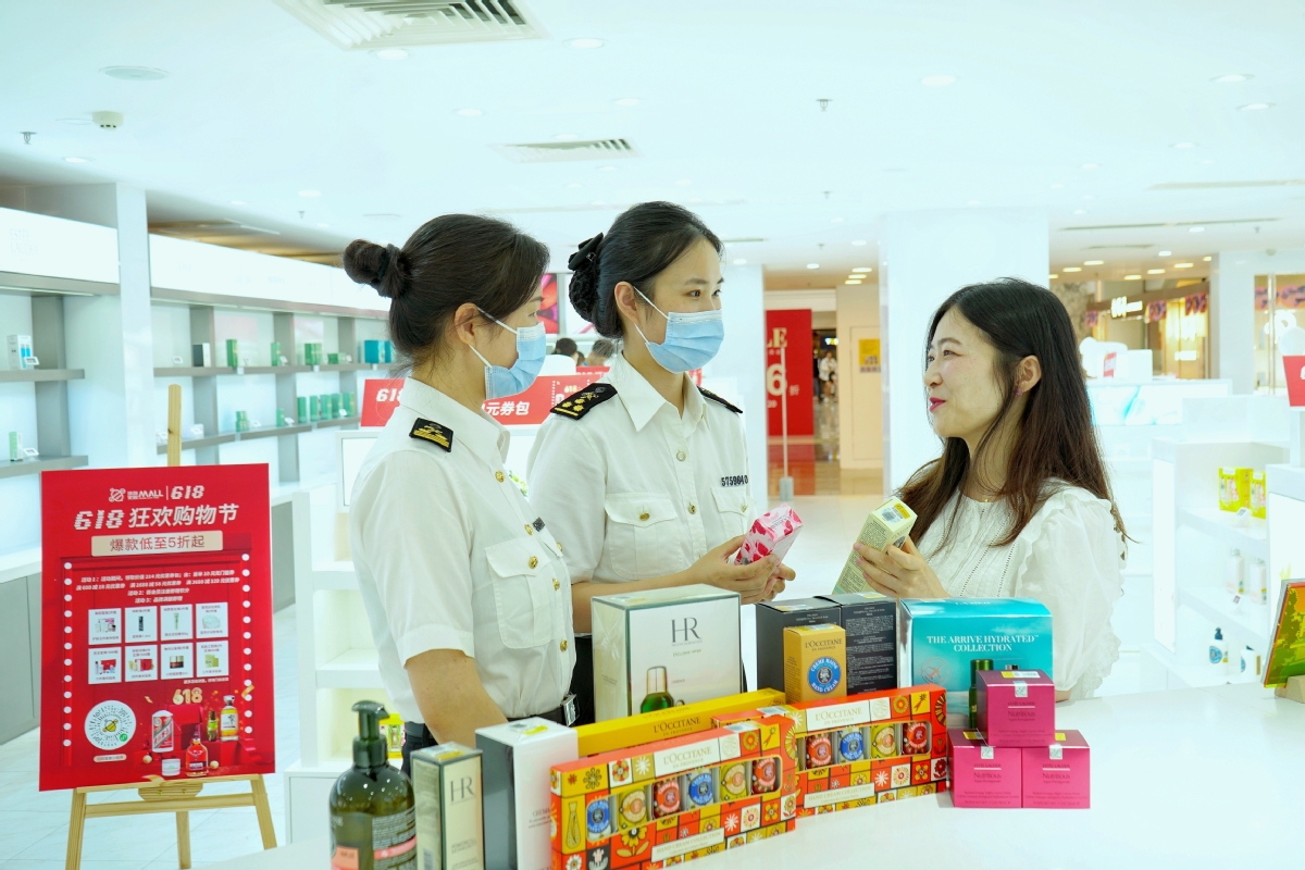跨境电商“全球购”为消费者提供更多元化的选择。拱北海关所属青茂海关全力支持企业用好“海关特殊监管区域外展示+线上下单”的跨境电商保税进口交易新场景新模式,为企业拓展境内免税消费市场添助力。