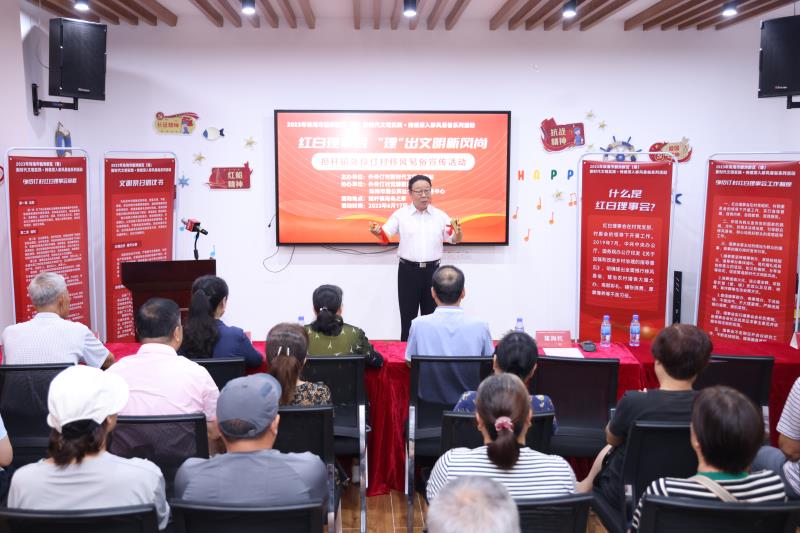 为进一步提升乡风文明、推进移风易俗,6月17日,鹤洲新区(筹)担杆镇外伶仃村以“红白理事会,理出文明新风尚”为主题在担杆镇海岛之家举行移风易俗宣传活动,共吸引了近50名外伶仃村村民参加。