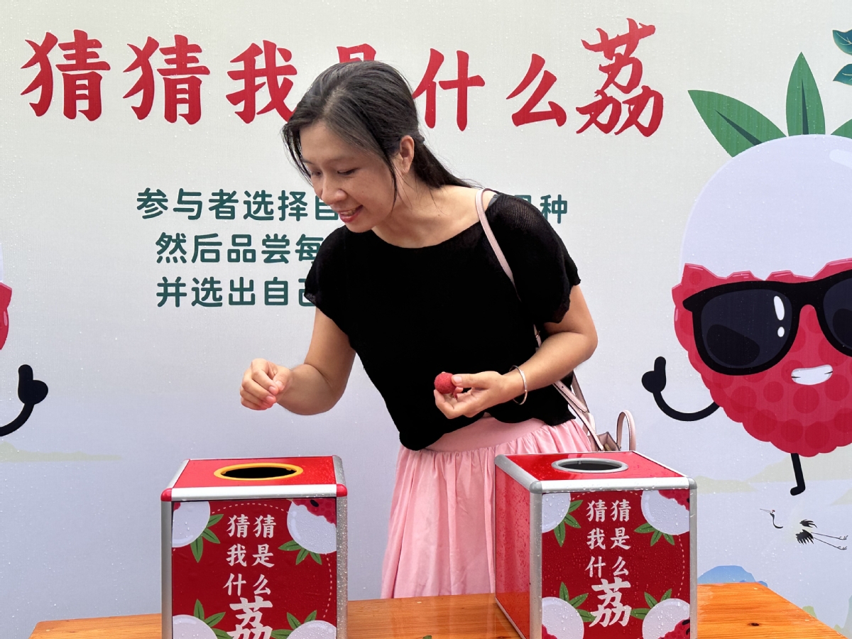 荔枝摊位一片火热,荔枝互动游戏区的人也不少。来自东北的孙先生,刚买完荔枝,又顺道来玩开荔枝盲盒游戏,虽然没猜对,但他还是很开心。“没想到荔枝竟然有这么多品种,而且每一种的味道还真的都不一样,真是让我这个北方人开眼了。”孙先生说。