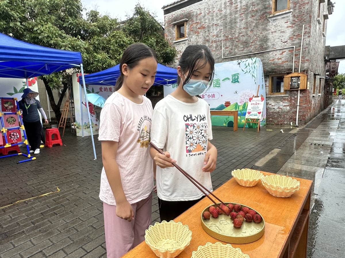 荔枝展销一条街、荔枝吃货比赛、开荔枝盲盒……18日,下洲村斗门印象小镇成了荔枝小镇,30多家荔枝种植大户,花式推广销售自家的荔枝,热闹极了。这摊位,阿婆卖力吆喝:“快来看我们的荔枝,果靓味甜。”那摊位,果园园主喊道:“来我们果园摘荔枝,35元让你吃到饱。”